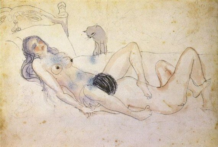 Obsérvese el dibujo de la vulva en el marco de la cama (con el clítoris incluido).