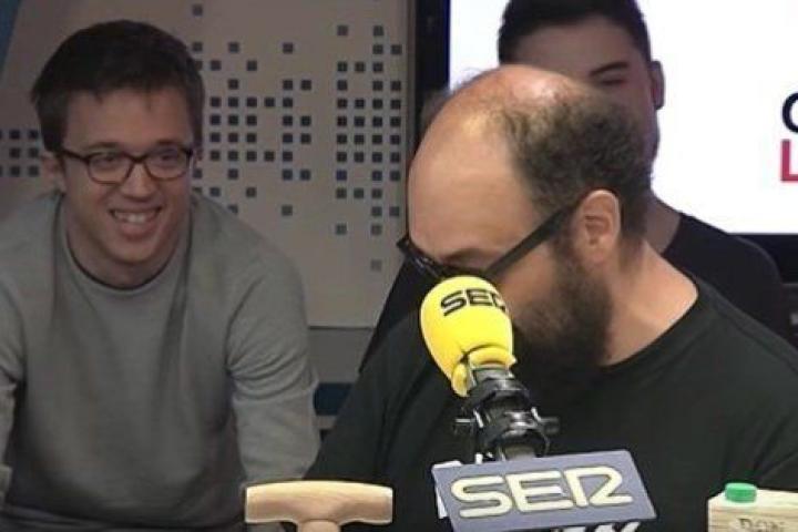 El secretario Político de Podemos, Íñigo Errejón, terminó aceptando el reto y acudió este miércoles al programa La Vida Moderna de la Cadena SER. Lo hizo después de mucha insistencia por parte de sus protagonistas, que incluso llegaron a ponerse 'agresivos' para presionarle: "Íñigo, cabrón, ¿cuándo vas a venir? Hostia, ya", bromeó David Broncano el pasado 20 de octubre.