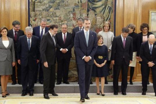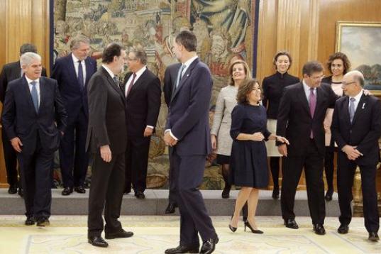 El rey posa con Rajoy y los 13 ministros de su nuevo Gobierno en el Palacio de la Zarzuela.