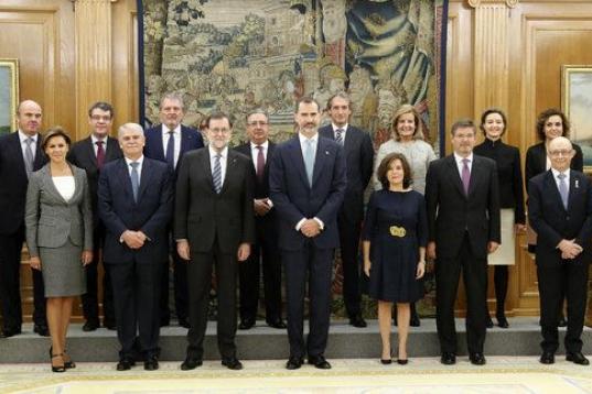 De izquierda a derecha: Soraya Sáenz de Santamaría, vicepresidenta del Gobierno y ministra de la Presidencia y para las Administraciones Territoriales; Alfonso Dastis, Exteriores y de Cooperación; Rafael Catalá, Justicia; María Dolores de C...
