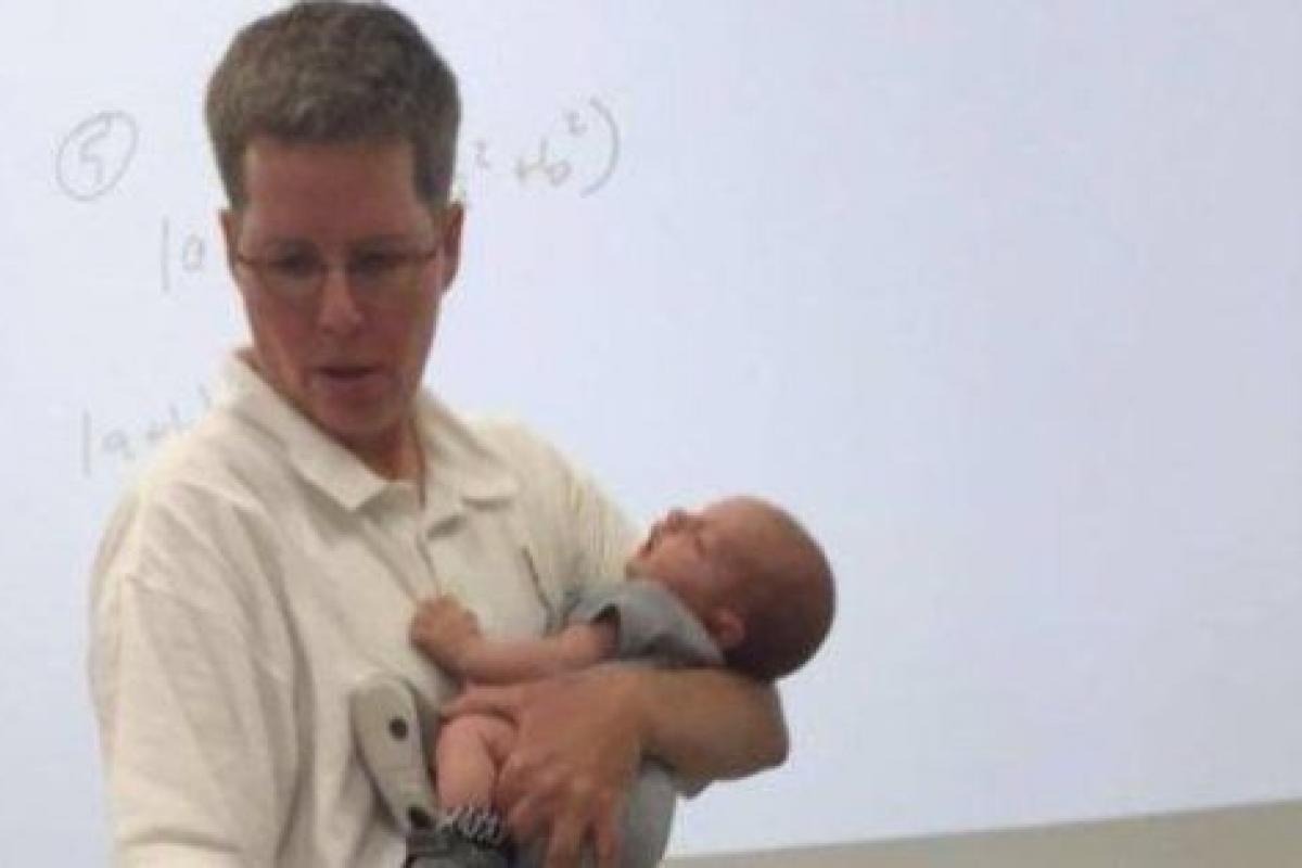La imagen de Josie Ryan, una profesora de la Universidad estadounidense de Lander, dando clases con un bebé en brazos está dando la vuelta al mundo.
