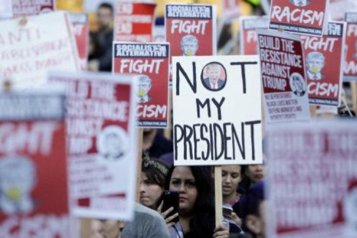 Una de las más multitudinarias ha sido la de Nueva York, donde miles de personas se concentraron frente a la Torre Trump de Manhattan al grito de "no es mi presidente", una consigna que se reprodujo en el resto de marchas. Una treintena de esos manifestantes fueron detenidos por desórdenes públicos por cortar el tráfico, de acuerdo con las autoridades.