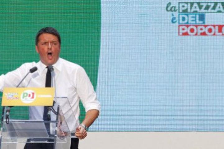 Este lunes 14 de noviembre, Matteo Renzi ha hecho un llamamiento a los electores del Movimiento 5 Estrellas y de la Liga Norte, compareciendo delante de varias banderas italianas… y ninguna europea, como suele ser costumbre para un jefe de Gobierno de uno de los Estados miembros de la Unión Europea.