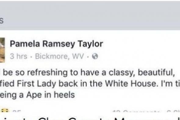 Su atacante, a través de las redes sociales, ha sido una funcionaria del condado de Clay (Virginia Occidental), que no tuvo mejor idea que celebrar la victoria de Donald Trump con estas palabras: "Será refrescante tener de nuevo en la Casa Blanca a una primera dama elegante, bella y digna. Estoy cansada de ver a un simio con tacones".