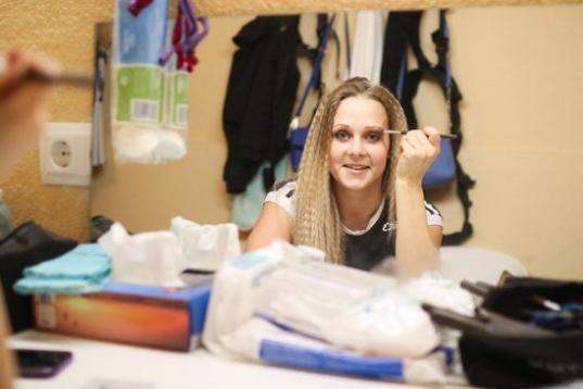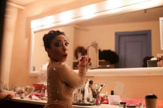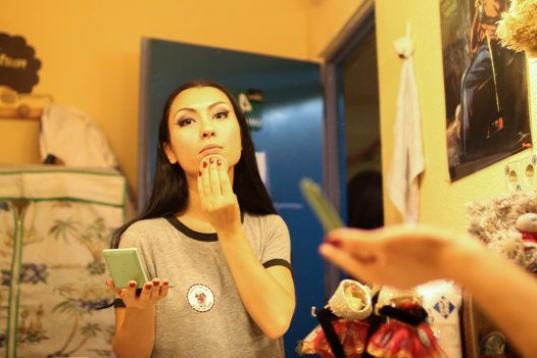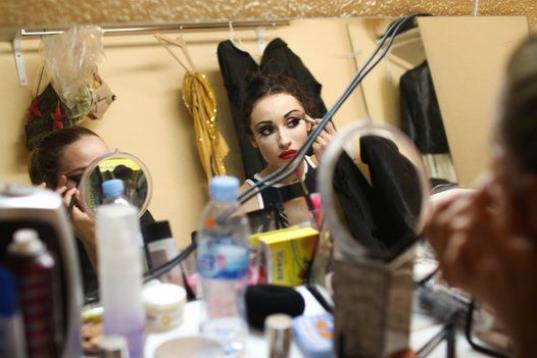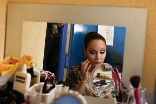 Es una de las tres bailarinas del espectáculo. El trío comparte camerino en el que se pasan media hora diaria maquillándose antes de empezar la función.