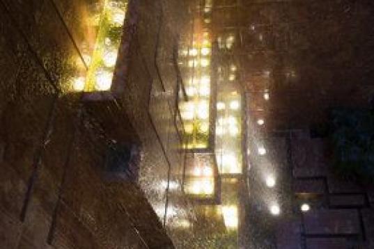 - Dentro de la torre hay una cascada y un puente que cruza la piscina de la misma.