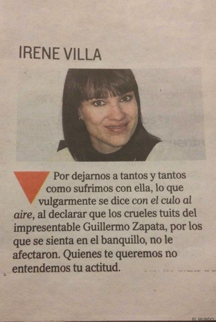 Hace una semana el periodista Jaime Peñafiel publicaba en su página en La Otra Crónica —la sección de corazón y sociedad del periódico El Mundo— unas palabras sobre Irene Villa que levantaron mucha polémica.