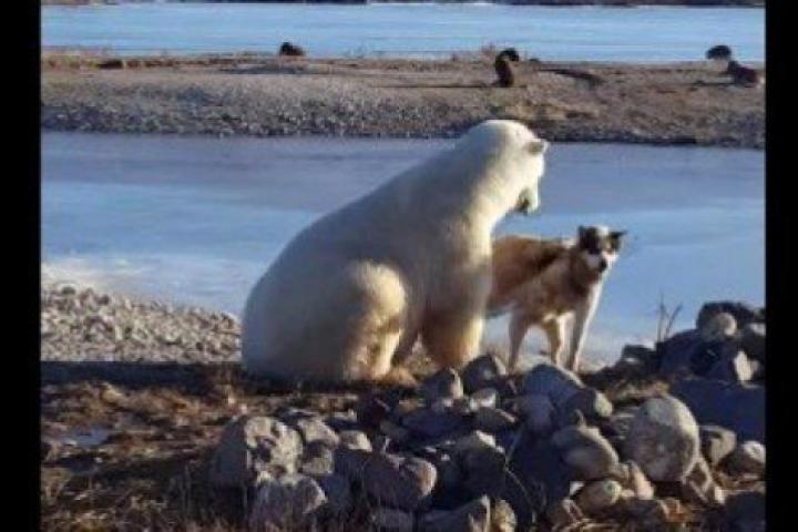 El pasado domingo David de Meulles grabó en Churchill (Manitoba, Canadá) una escena que enterneció el corazón de millones de personas en todo el mundo: la de un oso polar acariciando a un perro como si fuera su mejor amigo.