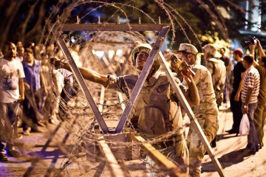 Varios soldados retiran la alambrada que rodeaba la Corte Suprema Constitucional de Egipto durante las protestas del día de la ira.