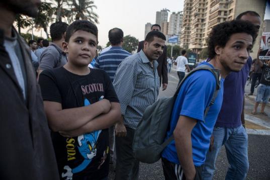 Una reunión callejera de partidarios de Morsi, congregados en Giza.