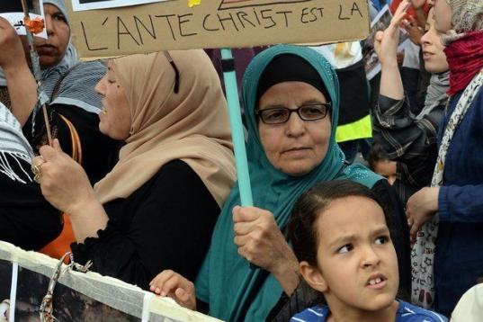 Una marcha en Paris a favor del Ejército egipcio y en contra de Morsi y su gobierno, con pancartas que equiparan a los Hermanos Musulmanes con Al Qaeda y el terrorismo.