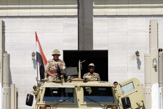 Soldados apostados a las puertas de la corte constitucional egipcia en El Cairo, autorizados a abrir fuego contra los manifestantes que pusieran en peligro edificios institucionales.