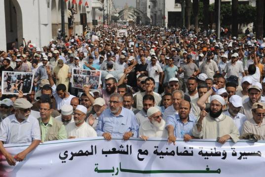 Masiva manifestación el domingo a favor del depuesto Morsi en Rabbat, Marruecos, organizada por la asociación musulmana ÄòAl Adl Wal Ihsan'Äô.