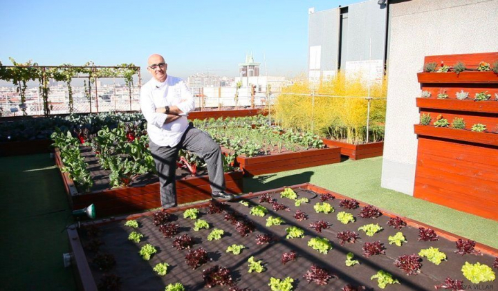En la azotea de este emblema de la hostelería de la ciudad, se encuentra uno de los huertos urbanos más grandes de Europa. Desde abril de 2014, Javier Librero, jefe de cocina, trabaja sembrando y cuidando las más de 25 variedades de plantas que se pueden encontrar en el huerto. Esta es ya la tercera temporada de cosecha y han conseguido abastecer en gran medida el menú de uno de los restaurantes del hotel: Las raíces del Wellington.