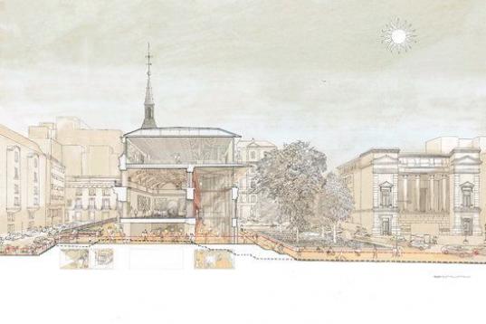 Los ganadores del concurso, al que acudieron ocho proyectos "del más alto nivel", presentaron un proyecto titulado "Traza oculta" que, según ha indicado el Real Patronato del Museo del Prado, "rentabiliza al máximo el uso museístico en el edificio" al crear "un gran atrio de acceso en la fachada sur" mediante una prolongación para proteger la fachada original.