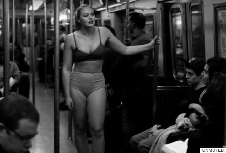 En ese momento, se quitó el vestido y se quedó en ropa interior en medio del abarrotado vagón.