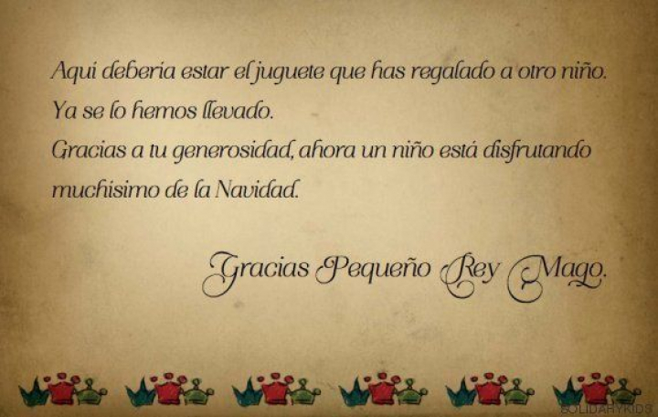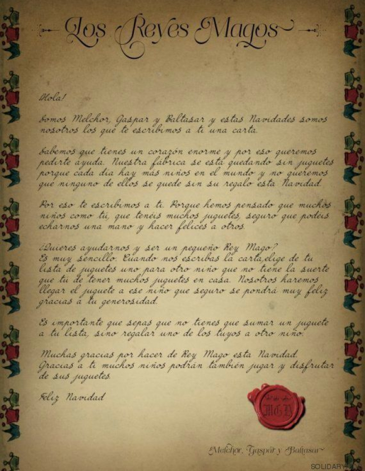 La carta de los Reyes pidiendo a los niños que sean solidarios.