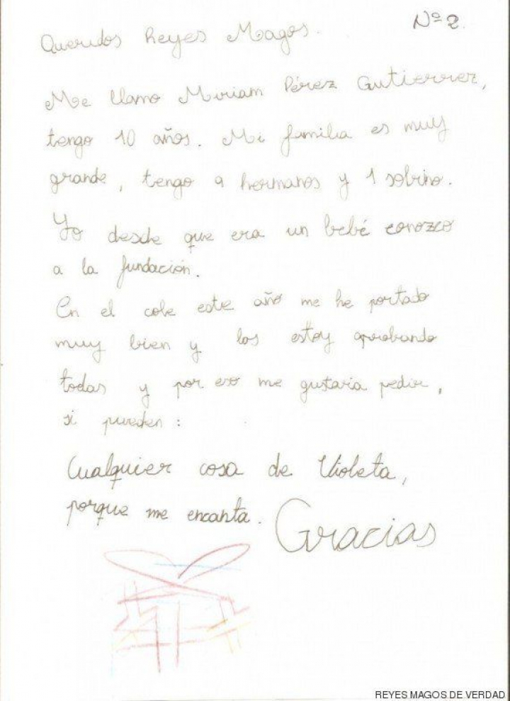 Una de las cartas recibidas por los Reyes Magos de Verdad.