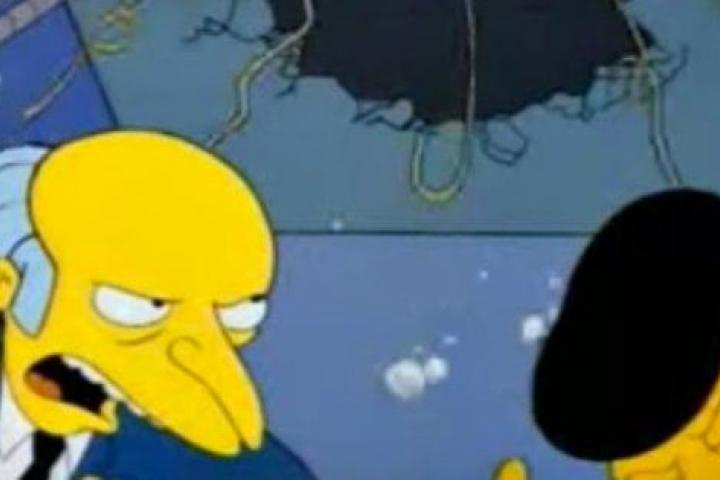 Ante esta acusación, el señor Burns responde: "Ese avión se estrelló en mi propiedad".