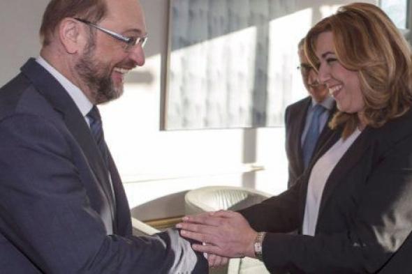 En el segundo día de su visita, Susana Díaz pasó la mañana en el Parlamento Europeo y la tarde en la Comisión Europea. En su encuentro de media hora con Gianni Pittella, líder de los socialistas europeos en el Parlamento Europeo, no abordaron los planes de Susana Díaz para llegar a la secretaría general del PSOE, pero el entorno del italiano asegura a El Huffington Post que Díaz le ha generado expectativas positivas tras el vacío de poder por la salida de Pedro Sánchez. El contenido de este encuentro (donde se ha tratado desde el impacto de la austeridad en el sur de Europa, la reivindicación de que las políticas sociales no computen para la reducción del déficit o la necesidad de abordar la crisis migratoria con un plan de desarrollo en África) confirma que la agenda de Díaz en Bruselas no ha sido – ni mucho menos - solamente regional. Ambos se han hablado en italiano y español, respectivamente, y han recurrido a los intérpretes en momentos puntuales.