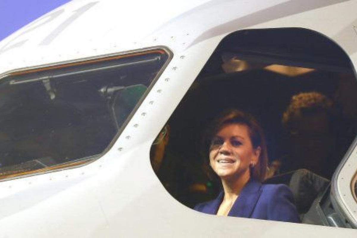 Cospedal se encomienda a la virgen en la presentación de un Airbus del Ejército