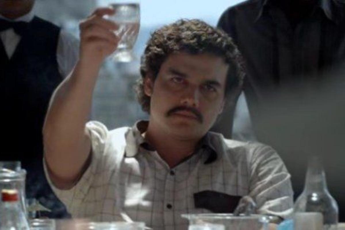 Un cartel gigante con publicidad de la serie Narcos felicita a todos los que caminen por la céntrica Puerta del Sol con un "oh, blanca Navidad" junto a la imagen del protagonista de la serie, Pablo Escobar.