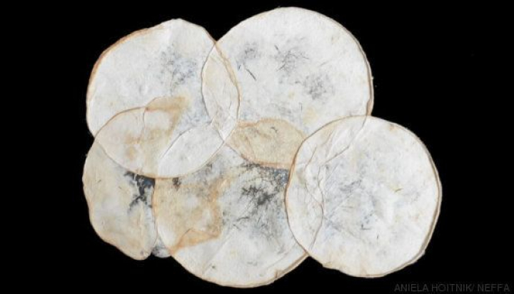 Puede parecer complicado pero es quizás la parte más sencilla del proyecto. El Mycellium crece en unos recipientes conocidos como platos Petri, de ahí la forma circular del material. "Una vez que ha crecido el material simplemente retiro los discos del plato y los coloco en un molde 3D, superponiéndolos y creando una especie de patchwork voy dando forma al tejido", explica Hoitink con claridad. "En el momento en el que se secan, los discos quedan pegados unos a otros, por naturaleza".