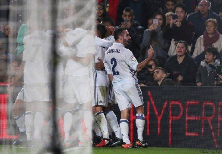 Cuando todos los jugadores del Madrid celebraban el tanto del central andaluz, Carvajal se dirigía a los aficionados culés y les dedicaba una peineta: