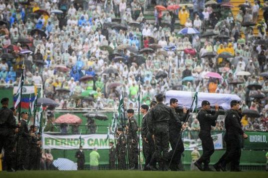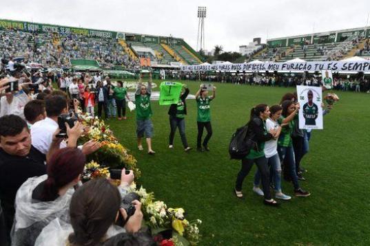 Pese a la lluvia, miles de personas acompañaron en las calles el paso de la comitiva fúnebre hasta el estadio del Chapecoense, donde retumbaron las notas del himno nacional para dar paso a la emotiva despedida de la afición a sus jugadores que se prolongó durante más de tres horas.