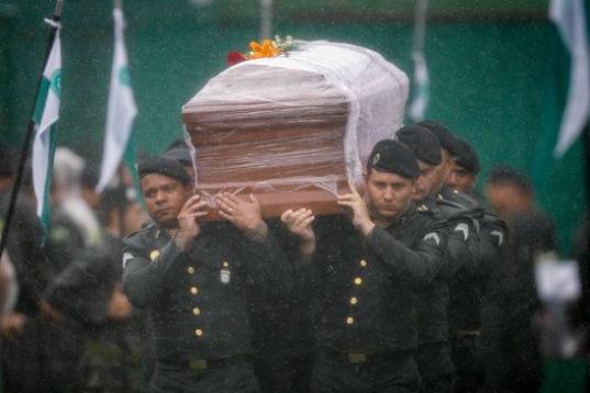 Los restos mortales de 50 de las 71 víctimas del accidente llegaron a primera hora al aeropuerto de Chapecó (sur de Brasil), donde fueron recibidos con honores militares en una breve ceremonia encabezada por el presidente del país, Michel Temer.