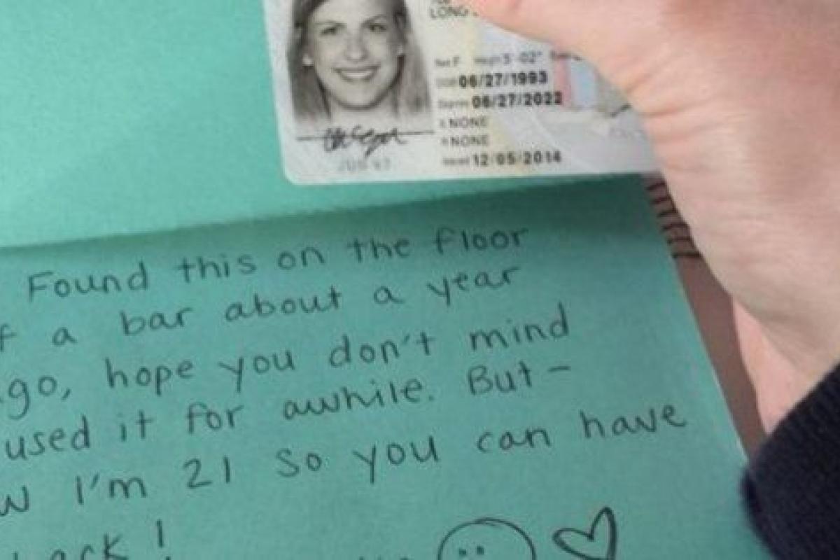 "Encontré esto en el suelo de un bar hace un año, espero que no te importe que lo haya usado un tiempo. Pero ya tengo 21 años, entonces te lo puedo devolver. ¡Gracias!".