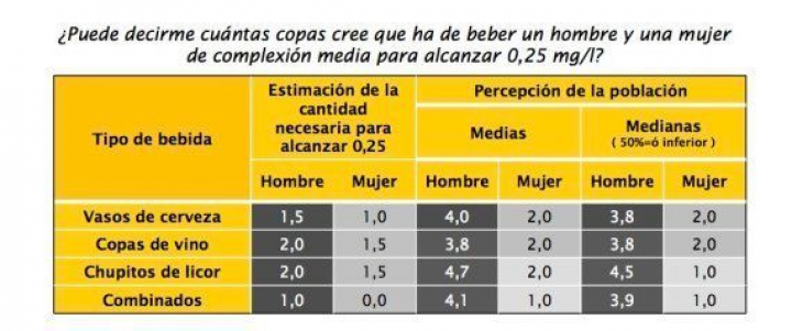 De acuerdo al estudio del RACC, la percepción de la población es que un hombre puede beber 4 vasos de cerveza, 3,8 copas de vino y 4,7 chupitos de licor sin dar positivo. En el caso de las mujeres, esas cifras bajarían hasta los dos para los tres casos.