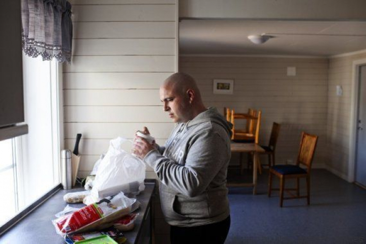 Edven, de 38 años, y condenado a más de tres años por un delito relacionado con el narcotráfico, en la cocina de su casita de madera en la cárcel de Bastoy el 11 de abril de 2011.| MARCO DI LAURO VIA GETTY IMAGES