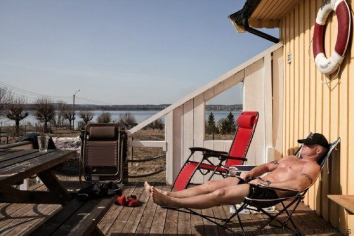 Un preso, condenado a 16 años y medio por asesinato y delitos de narcotráfico, toma el sol frente a la casita de madera donde vive en la cárcel de Bastoy, el 11 de abril de 2011.| MARCO DI LAURO VIA GETTY IMAGES