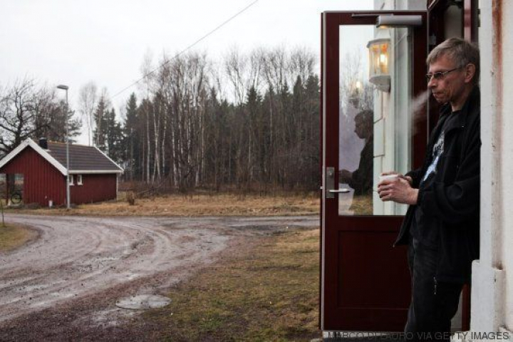 Bjorn, de 54 años, fue condenado cinco años y medio por intento de asesinato. Posa frente a la casita de madre donde vive en la prisión de Bastoy, el 12 de abril de 2011.| MARCO DI LAURO VIA GETTY IMAGES