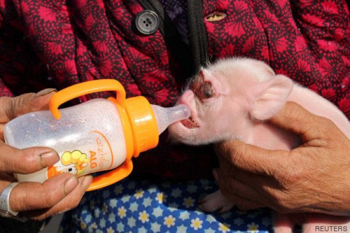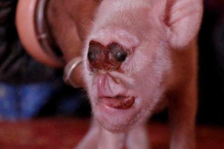 Este pequeño cochinillo, nacido en Zhijin, China, tiene la cara deformada y según se informa en el portal Sina, nació junto a otros siete cerdos.