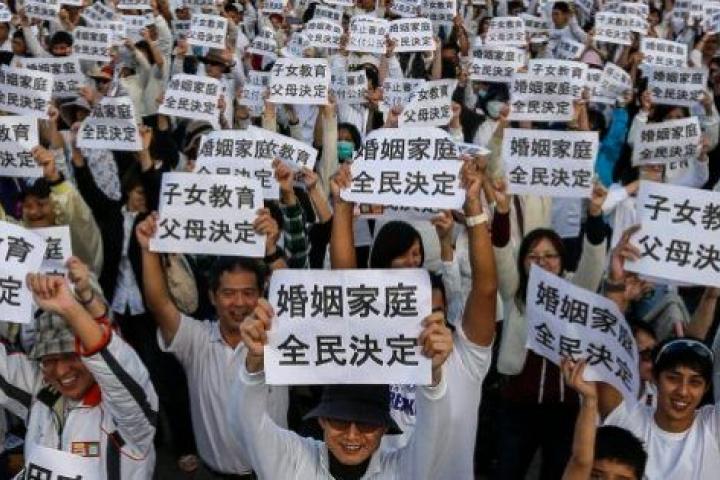 "El matrimonio tiene una gran repercusión social, por eso pedimos que el pueblo sea el que decida en referéndum", dijo el representante de la Alianza Felicidad para la Próxima Generación, Tseng Hsien-ying, el sábado pasado, durante la protesta contra las uniones gay.