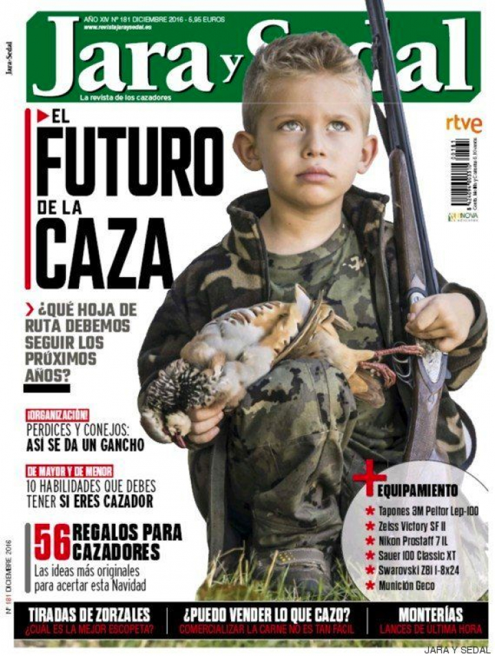 La publicación ha causado controversia en redes sociales debido a la imagen que ilustra la portada, en la que se puede ver a un niño con un arma en una mano y una perdiz en la otra.