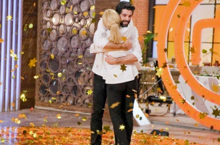 El abrazo entre Cayetana y Miguel Ángel tras la decisión de que el actor era el ganador del primer MasterChef Celebrity de España.