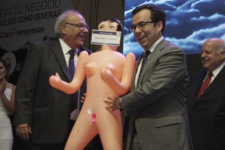 El ministro de Economía de Chile, Luis Felipe Céspedes, se ha visto envuelto en la polémica después de recibir durante un acto con empresarios una muñeca hinchable, supuestamente como aliciente para "estimular" la situación económica del país suramericano.