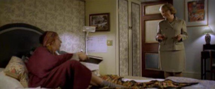 En dicha escena, vemos a la directora del colegio al que iba el hijo de Karen (el personaje de Emma Thompson) llegando a casa y saludando a una mujer que se encuentra a Geraldine en la cama leyendo. Ambas conversan sobre cómo les ha ido el día y gastan bromas.
