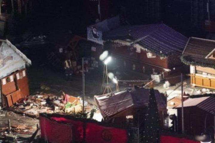 El camión, que había sido robado en Polonia, recorrió unos cincuenta metros del tradicional mercadillo y destrozó a su paso puestos de adornos navideños y casetas de comida, mientras arrollaba a numerosos visitantes.