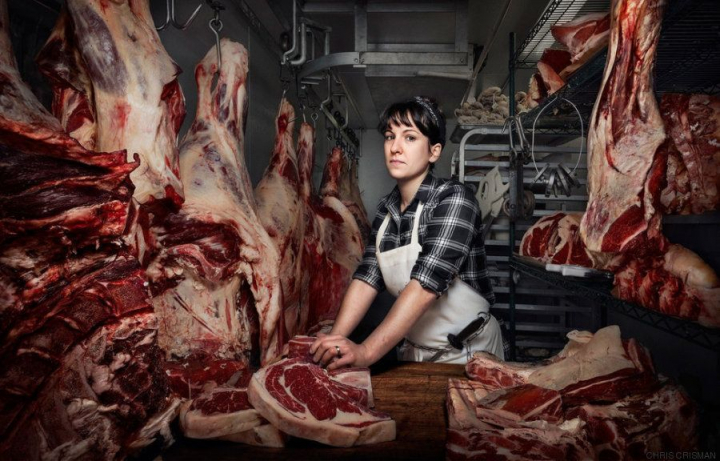 Al fotógrafo comercial Chris Crisman le pareció muy interesante que una amiga de un amigo suyo dejara su trabajo como diseñadora web en Nueva York para hacerse carnicera en Filadelfia. Crisman pensó que el caso de esta mujer sería un tema ideal para un retrato.