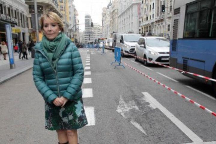 Drama en Malasaña. Esperanza Aguirre, portavoz del PP en el Ayuntamiento de Madrid, asegura que se encuentra "encerrada" en su casa por culpa de las restricciones de circulación impuestas por el Consistorio por la alta polución en la capital, que este jueves sólo permite circular a los vehículos con matrícula impar.