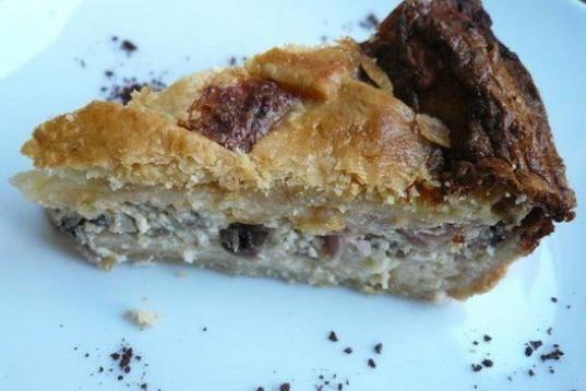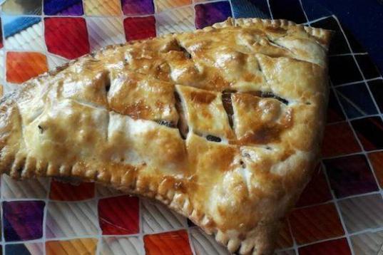 Está relleno de pechugas de pollo y setas. Aquí tienes la receta completa, con las instrucciones para hacer la masa incluidas.