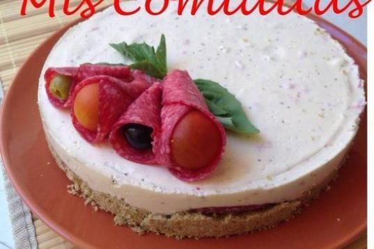 La base se hace con galletas crackers, albahaca y mantequilla. Para conseguir la parte de arriba hay que mezclar queso, yogur, semillas de amapola y salami. Todas las instrucciones las encuentras aquí.