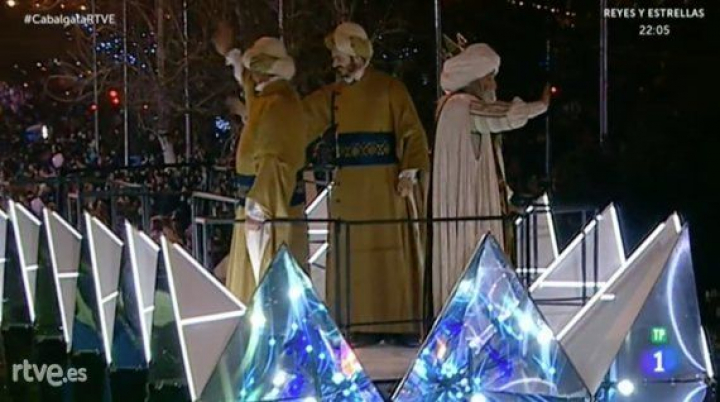 Entre amplias medidas de seguridad, la comitiva real ha partido a las 18:30 horas desde la zona de Nuevos Ministerios de Madrid en dirección a la plaza de Cibeles en un gran desfile con 30 escenas y doce carrozas cuyo eje principal ha sido la curiosidad, concebida como un cuento infantil.