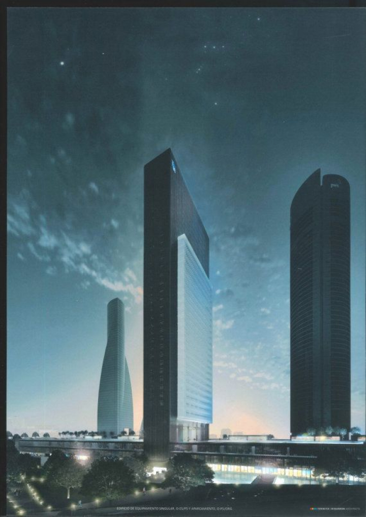 El nuevo rascacielos, de 70.000 m2, se proyectará junto al complejo conocido como las 'Cuatro Torres' y albergará un nuevo campus de la escuela de negocios IE University, de 50.000 m2, un centro médico especializado del grupo Quirón, un espacio comercial de 12.000 m2, zonas de restauración, 2.000 plazas de aparcamiento y contará además con zonas verdes.