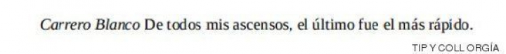Hasta Tip y Coll, apenas una década después de la muerte de Carrero Blanco, publicaron un libro llamado Tip y Coll Orgía en el que atribuían frases inventadas a diversos personajes históricos, entre ellos al dirigente franquista: