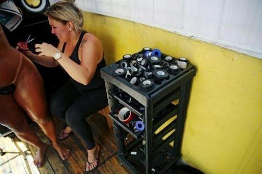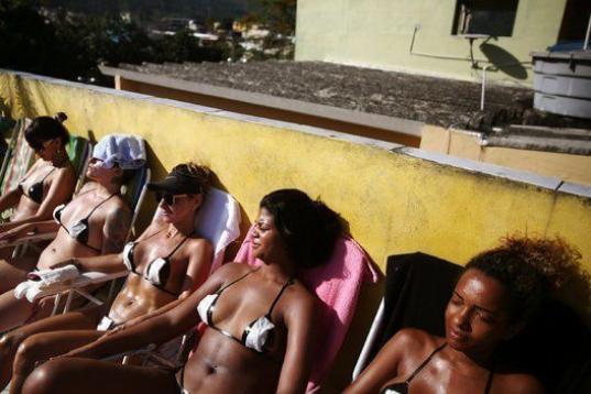 Tres años después de mudarse a Realengo, este nuevo espacio acoge a cerca de 25 mujeres cada día, que pelean por una silla de playa para tomar el sol bajo los cuidados de la esteticista. "Tenemos unos cuatro ayudantes que hidratan a las chicas, echándoles agua y recordándoles que deben beber". El día a día se desarrolla con una treintena de mujeres que pagan 70 reales —más de 20 euros— para tomar el sol durante unas tres horas —hora y media de frente y otro tanto de espaldas— mientras hablan con otras clientas, miran el teléfono móvil, les sirven agua fresca y las mojan con pequeñas bombas de agua para aplacar el calor.